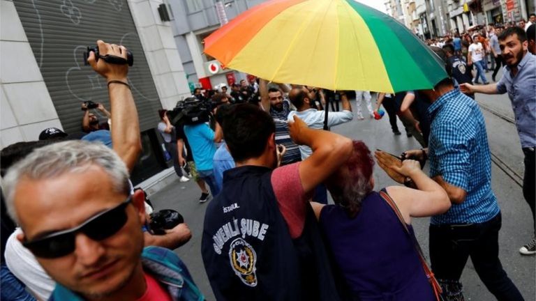 In 2015, police had banned the annual LGBTI Pride march in Taksim Square in Istanbul. They tried to disperse the crowds, using water cannon, rubber bullets and pepper spray. But Ms Kader stood stubbornly against the police.
