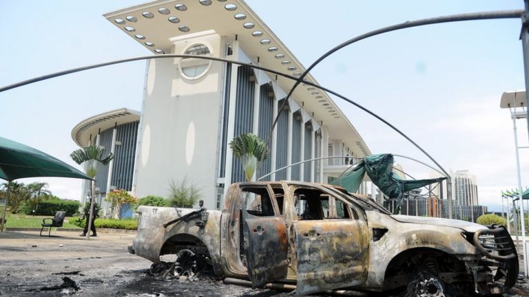 "Democracy does not sit well with an attack on parliament," Mr Bongo said.