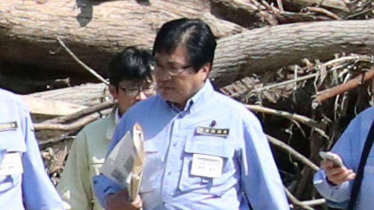 Shunsuke Mutai, the vice-minister of reconstruction, was visiting the town of Iwaizumi to assess the deadly damage caused by Typhoon Lionrock.